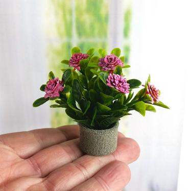 Die Pflanze mit 5 Blüten und einem Erdballen, somit kann die Pflanze auch ohne Kübel verwendet werden, hat eine Höhe von insg. ca. 5,5 cm und eine Breite von ca. 7,5 cm und ist aus Kunststoff. Der Blumentopf ist 2,5x1,7 cm und ist ein 3D Druck mit eigenem Betoneffekt bearbeitet worden ( außer Unterseite ) . Reine Handarbeit. (F01)