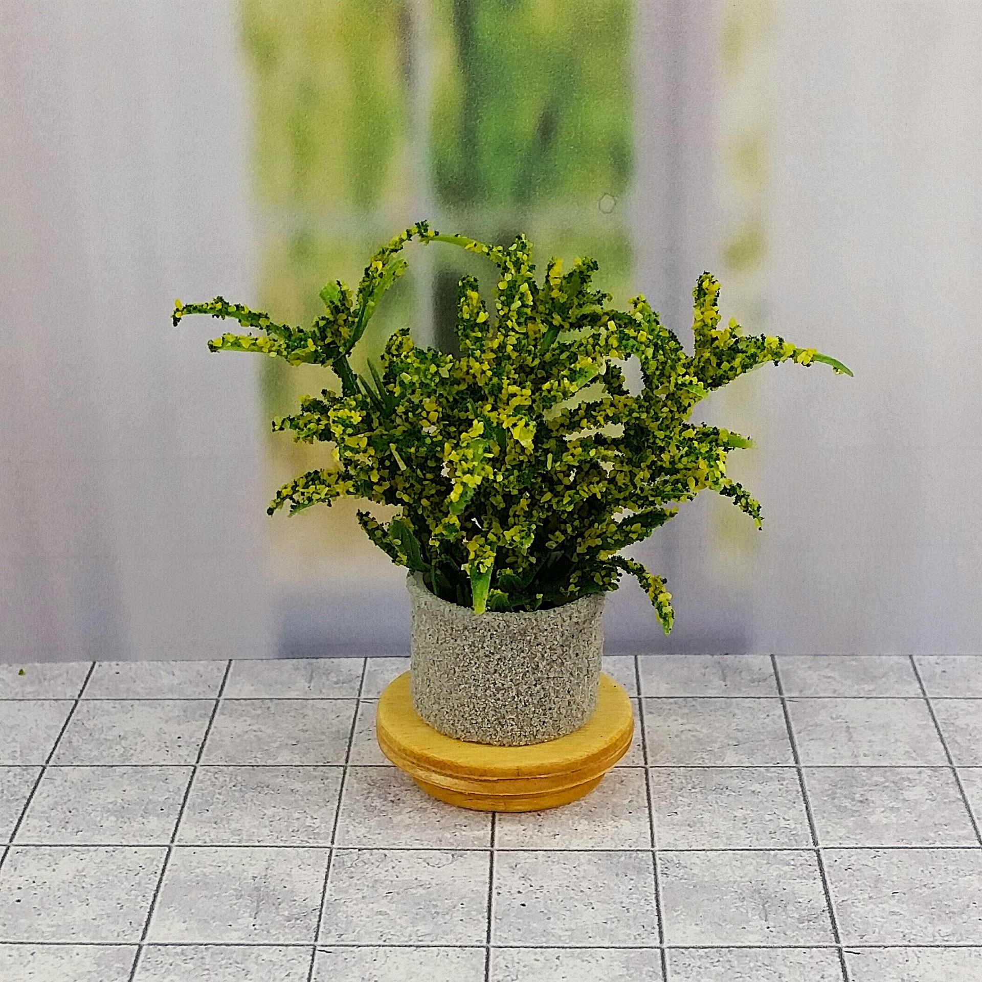 Die Grünpflanze im Kübel hat eine Höhe von insg. ca. 5,5 cm und eine Breite von ca. 5,5 cm und ist aus Kunststoff und kann auch als Strauch mit Erdballen (fest) verwendet werden.. Der Blumentopf ist 2,4x1,7 cm und ist ein 3D Druck und mit eigenem Betoneffekt bearbeitet ( außer Unterseite ) . Reine Handarbeit. Ohne Untersetzer. (F02)